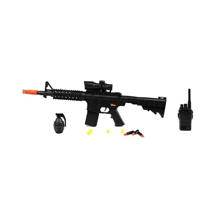 یک مجموعه هیجانانگیز برای کودکان علاقهمند به بازی های پلیسی است. این ست شامل تفنگ M16 دوربیندار، کلت پلیسی، بیسیم، نارنجک، ۱۰ گلوله گرد، ۳ تیر فومی و ۳ فشنگ است و از پلاستیک مقاوم و ایمن ساخته شده است. طراحی واقعی، تنوع در تجهیزات و ساخت با کیفیت آن را به اسباب بازی مناسبی برای تقویت خلاقیت و هدیه ای جذاب و نقش آفرینی برای کودکان و نوجوانان تبدیل کرده است.