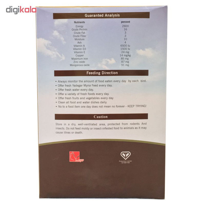 غذا خشک مرغ مینا یادگار مدل Pelleted وزن 1 کیلوگرم